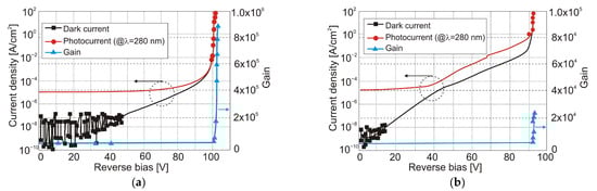 - Xia, Z.; Zang, K.; Liu, D.; Zhou, M.; Kim, T.-J.; Zhang, H.; Xue, M.; Park, J.; Morea, M.; Ryu, J.H.; et al. High-sensitivity silicon ultraviolet p+-i-n avalanche photodiode using ultra-shallow boron gradient doping. Appl. Phys. Lett. 2017, 111, 081109. [Google Scholar] [CrossRef]