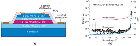 - Shaw, G.A.; Siegel, A.M.; Model, J.; Geboff, A.; Soloviev, S.; Vert, A.; Sandvik, P. Deep UV Photon-Counting Detectors and Applications. Itzler, M.A., Campbell, J.C., Eds.; 2009, p. 73200J. Available online: https://spie.org/Publications/Proceedings/Paper/10.1117/12.820825 (accessed on 26 March 2023).