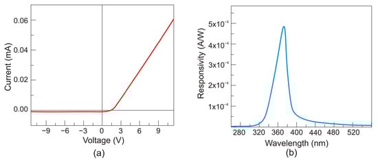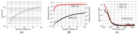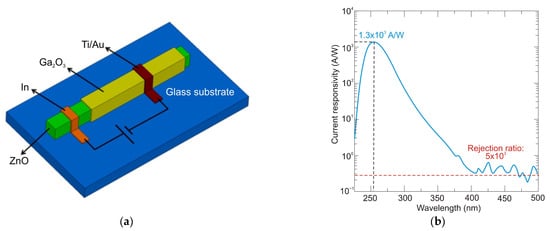 - Carrano, J.C.; Li, T.; Grudowski, P.A.; Eiting, C.J.; Dupuis, R.D.; Campbell, J.C. Comprehensive characterization of metal–semiconductor–metal ultraviolet photodetectors fabricated on single-crystal GaN. J. Appl. Phys. 1998, 83, 6148–6160. [Google Scholar] [CrossRef]