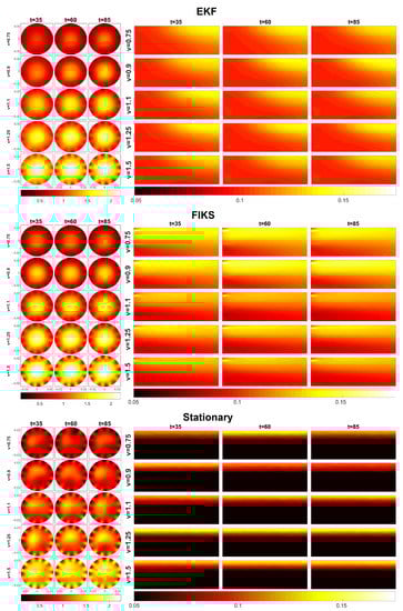 Based on the results shown in Table 2 and Table 3, we concluded that the FIKS outperformed the EKF and stationary reconstructions in the conditions considered in the experiments. For this reason, the rest of this section focuses on the analysis of the FIKS-based estimates only.
