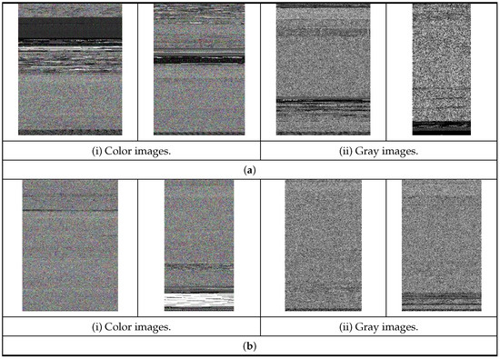 Samples of visual color and gray images of ransomware and benign apps. (a) Visual images of ransomware apps. (b) Visual images of benign apps.