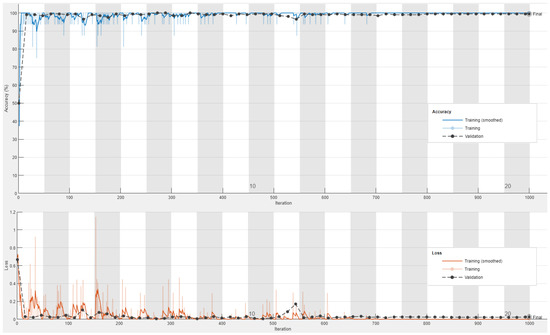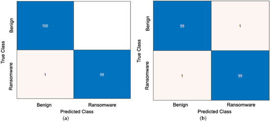 The CNN models used in the proposed vision-based RD approach can be classified into two categories: (1) single-path designs and (2) multi-path designs. In the first category of single-path designs, the CNN layers are arranged in a series path with a sequential structure, and they have single input and output layers. In the second category of multi-path designs, there are multiple parallel paths for the composed CNN layers in the utilized CNN model, and thus they have multiple input and output layers. Examples of single-path CNN designs are AlexNet, VGG16, DarkNet19, and VGG19 models, wheres examples for the multi-path CNN designs are ResNet50, InceptionV3, ResNet101, GoogleNet, DarkNet53, Xception, InceptionResNetV2, MobileNetV2, NasNetMobile, ResNet18, DenseNet201, NasNetLarge, Places365-GoogleNet, ShuffleNet, and SqueezeNet models [47,48,49]. From a complexity perspective, the multi-path designs-based CNN models are more complex than the single-path-design-based CNN models. They have an additional advantage in attaining high detection accuracy and a low misclassification rate. This is due to the extensive extracted features from the input visual ransomware and benign images by different composed CNN layers during the training process.
