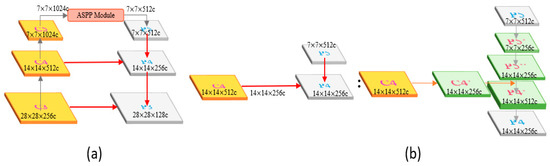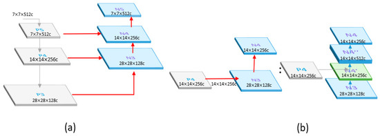 - Lin, T.Y.; Dollár, P.; Girshick, R.; He, K.; Hariharan, B.; Belongie, S. Feature Pyramid Networks for Object Detection. In Proceedings of the 2017 IEEE Conference on Computer Vision and Pattern Recognition, Honolulu, HI, USA, 21–26 July 2017; pp. 936–944. [Google Scholar]