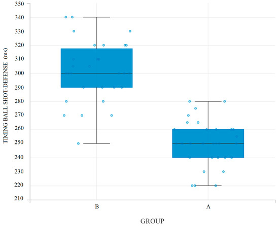 - The senior goalkeepers (Group A) (250–260 ms) achieved a significantly shorter decision-making time (p = 0.001) during saving actions after the kicker’s shot on goal than youth goalkeepers (Group B) (300–320 ms).