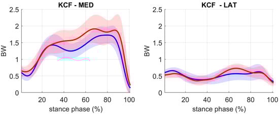 - Meireles, S.; De Groote, F.; Reeves, N.D.; Verschueren, S.; Maganaris, C.; Luyten, F.; Jonkers, I. Knee contact forces are not altered in early knee osteoarthritis. Gait Posture 2016, 45, 115–120. [Google Scholar] [CrossRef] [PubMed]