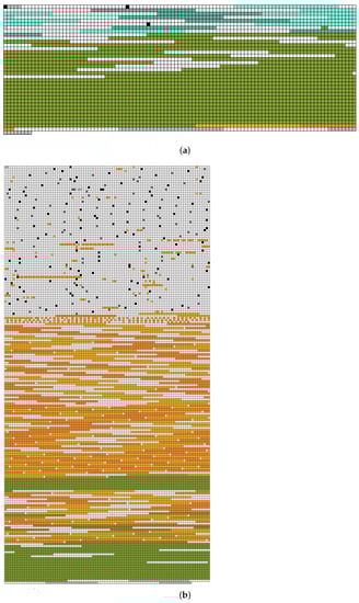Visualization of file system fragmentation of Redis; (a) The snapshot after 60 s; (b) The snapshot after 1 h.