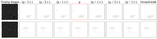 This study uses different parameter settings of the capture-related devices to take various test image sets and then select the test image set with the best defect detection effect. The parameter settings of this selected test image set are used as the standard for subsequent image acquisition. During the image acquisition process, the brightness of the acquired image is easily affected by the intensity of ambient light, which in turn affects the detection results. We investigate whether the detection results of the proposed method are susceptible to certain changes in image brightness to test the robustness of the method. In this study, the EWMA control scheme is applied to detect deformation defects, and the GA-based ANFIS method is adopted to categorize the severity of deformation defects. The performance evaluation results using different brightness variations are shown in Table 6, and the PR (precision–recall) chart [47,48] showing the detection performance variation trend is plotted in Figure 14. It can be seen that when the brightness of the image becomes brighter or darker by more than one standard deviation, the detection recall rate decreases significantly, and the imprecision rate also increases significantly. Figure 15 shows the local deformation detection results of the proposed method to systematically vary the image illumination brightness. Although some deformed regions are missing, most of them are detected and the overall detection rate is still better when the original brightness is applied. The proposed method is moderately sensitive to changes in light intensity. The results show that deformation defects in most multifocal glass images are accurately identified in the resulting images despite slight and moderate illumination changes.