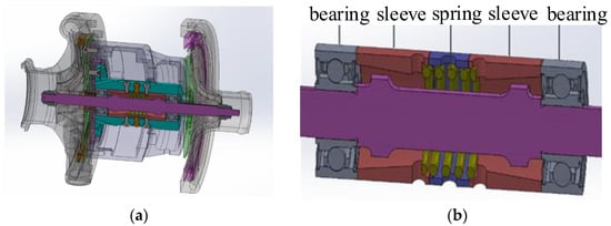 Mounting of angular contact ball bearings on turbine rotors: (a) structure design of turbine; (b) installation of bearings on turbine rotors.