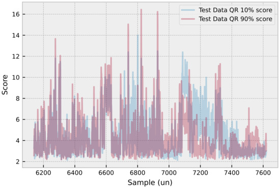 Figure 9 demonstrates the application of the ECOD anomaly detection algorithm in the context of the neural-based predictive maintenance tool for electrical machines. The figure presents a plot that combines the 10% and 90% quantile predictions with the anomaly detection results derived from the ECOD algorithm. The plot showcases how the algorithm identifies potential faults within the given quantile range, allowing for a more comprehensive assessment of the machine’s health. By combining the quantile predictions with ECOD anomaly detection, machine operators can gain a deeper understanding of the machine’s health and the probability of faults occurring. This information enables them to make more informed decisions regarding maintenance planning and take proactive measures to address potential issues.