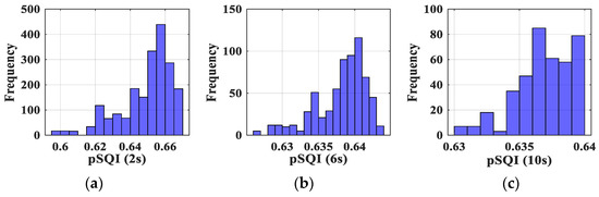 Distribution of obtained pSQI: (a) for a 2 s window, (b) for a 6 s window and (c) for a 10 s window.