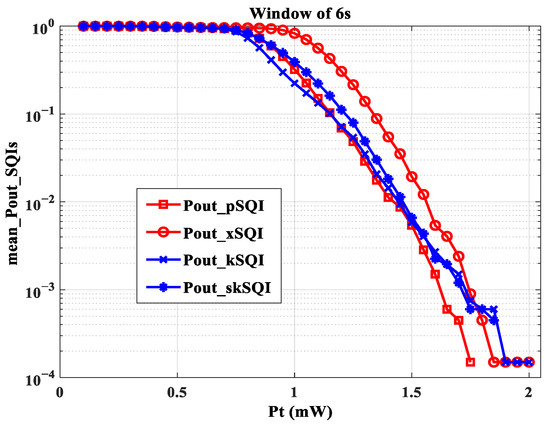 Then, in order to discuss the robustness of SQIs, we introduced the probability that the SQI does not respect the criteria, namely, the outage probability . Considering the identification SQI intervals determined in the previous step (before transmission), this probability was defined as follows: