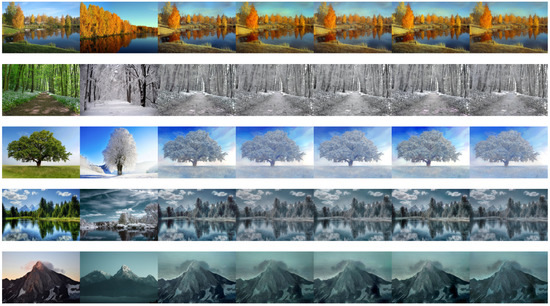 - Heusel, M.; Ramsauer, H.; Unterthiner, T.; Nessler, B.; Hochreiter, S. Gans trained by a two time-scale update rule converge to a local nash equilibrium. arXiv 2017, arXiv:1706.08500. [Google Scholar]
