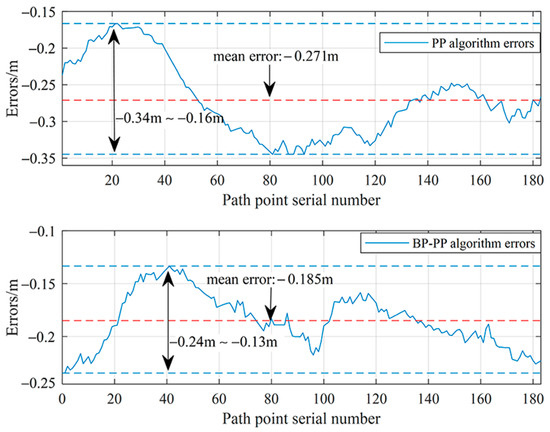 Comparing lateral errors between the PP algorithm and the BP–PP algorithm.