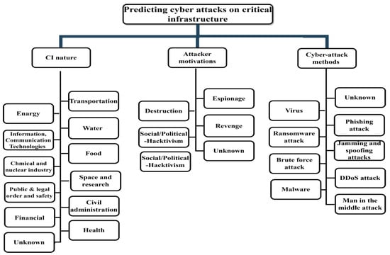 To detect cyberattacks using prediction models, three main elements are required: ML algorithms, datasets, and characteristics of the trained data [20,21]. Cyber analysts can use ML to predict and mitigate the threat by identifying patterns discovered in previously detected malware [22]. Cybersecurity procedures follow a lifecycle model of prediction, detection, prevention, and reaction, similar to other IT processes [23]. Organizations must take all preventative measures during the prediction phase to identify potential attackers, their motives, and the techniques they plan to use. This involves gathering information about cyber threats and performing risk analysis [24]. Following a standardized methodology, such as ISO 31000, is crucial, and procedures should include defining the scope and objectives for risk management, conducting a risk assessment, and generating appropriate risk mitigation plans [25]. The research proposes a new approach to predict cyberattacks in CI based on ML algorithms and attackers’ motivations. The study tests various ML algorithms and aims to maximize the use of real datasets to improve prediction accuracy. The prediction model can be customized, depending on the nature of the CI and attacker motivations.