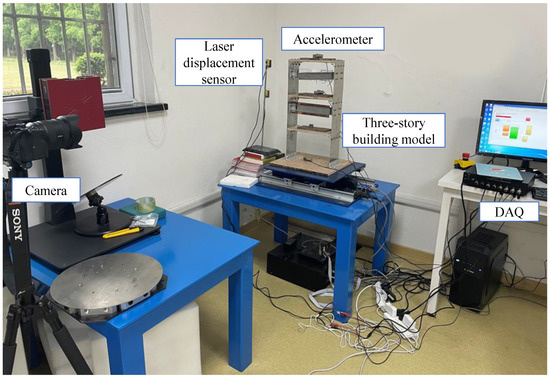 | Laser displacement sensor (LDS) | A Panasonic HG-C 1200 micro laser distance sensor is employed to supply the ground-truth displacement data for the top floor, with a sampling rate of 500 Hz |