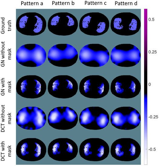 11. Schullcke, B.; Gong, B.; Krueger-Ziolek, S.; Soleimani, M.; Mueller-Lisse, U.; Moeller, K. Structural-Functional Lung Imaging Using a Combined CT-EIT and a Discrete Cosine Transformation Reconstruction Method. Sci. Rep. 2016, 6, 25951. [Google Scholar] [CrossRef] [PubMed]