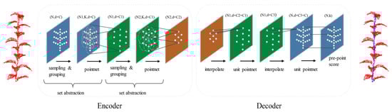 2.3. Branch–Leaf Segmentation Based on PointNet++ Model