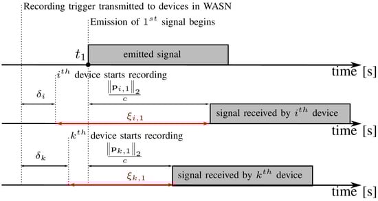 where c is the speed of sound and denotes the p-norm . The timeline of the aforementioned events that occur when WASN starts to capture the microphone signals associated with an acoustic event is presented in Figure 1.