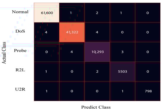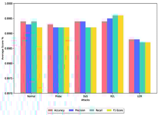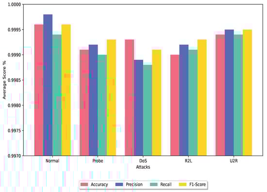 Accuracy: Accuracy evaluates the proportion of correctly classified instances among all instances, providing an assessment of the classification scheme’s effectiveness in distinguishing malicious traffic. The accuracy is calculated using the following equation: