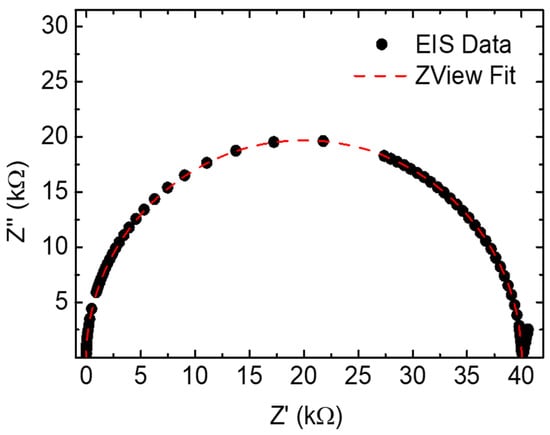 The ZView software, version 3.0 from Scribner Associates® (Southern Pines, CA, USA), was used for data analysis and calculations of the capacitances () and dielectric constants () of the blends using Equation (1). Adjustments were made using the electrical RC equivalent circuit.