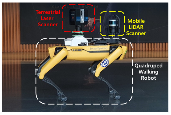 - Park, S.; Yoon, S.; Ju, S.; Heo, J. BIM-based scan planning for scanning with a quadruped walking robot. Automat. Constr. 2023, 152, 104911. [Google Scholar] [CrossRef]
