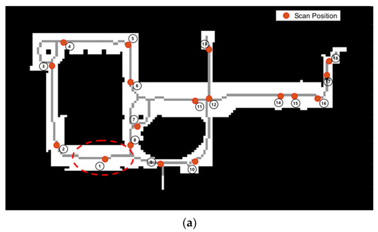 Progress in mobile robotics platforms has led to a revolutionary transformation in the process of acquiring high-resolution point clouds. These advancements have effectively addressed the drawbacks associated with TLS by significantly reducing the time required for scanning, resulting in a more efficient and time-effective process [19]. Many researchers have proposed stop-and-go scanning systems that incorporate mobile robots to collect precise 3D geometric data, thereby minimizing scanning time and human intervention [16,20,21,22,23,24]. In such systems, mobile robots navigate automatically to specific positions, where they conduct static laser scanning to generate detailed 3D point clouds.