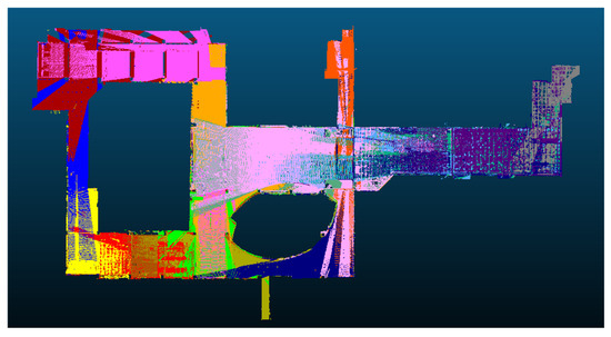 Many traditional point cloud registration methods focus on identifying salient features and use local geometric descriptors to establish correspondences between point clouds. However, ensuring sufficient overlap and descriptive features can be challenging in an indoor environment [44]. Therefore, this approach aims to extract wall planes as geometric features, taking advantage of the fact that man-made environments often consist of planar structures, such as walls. These walls represent the main structure of the scene and can provide valuable information for robust registration [68]. Additionally, a constrained condition that adjusts wall-plane extractions was applied based on the assumption that all such walls are parallel or perpendicular to each other [6,7].