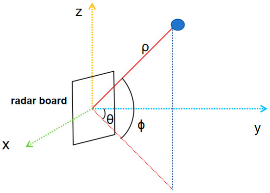 where the original point coordinates are in the ternary information, is the distance Range between the point and the radar antenna, is the elevation angle Elevation of the radar antenna to the point cloud, and is the angle Azimuth of the point and radar connecting line with the radar facing direction in the xy-plane projection.
