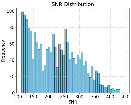 Denoising Phase: In the preprocessing of collected point cloud data, we employ filtering techniques, integrating the mechanism of Signal-to-Noise Ratio (SNR) distribution to determine appropriate thresholds, as illustrated in Figure 3. The motivation behind this strategy lies in leveraging the SNR distribution to identify distinctions more accurately between signals and noise. The SNR distribution provides information about the relative quality of each data point, allowing us to set thresholds based on the principle of retaining the majority of signal points while effectively filtering out noise. Additionally, we introduce a boundary threshold from real-world scenarios to further enhance the quality of the point cloud data and alleviate negative impacts caused by environmental factors. This comprehensive denoising strategy ensures the robust performance of our gait recognition system in complex environments.
