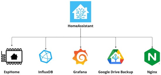 The HA platform provides also Integrations, which are pre-configured packages that can be easily installed and integrated to provide additional functionalities and thus expanding the capabilities of the base system. In order to take advantage of this potential, several Integrations were used to improve the security and robustness of the Cloud and Fog-Node instances, allowing easy configuration and maintenance of the Edge-Node monitoring Motes and improving the way to visualise all the information collected over time. The set of Integrations used in the SchoolAIR framework is presented in Figure 2.