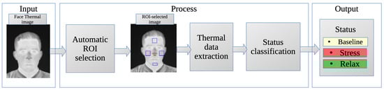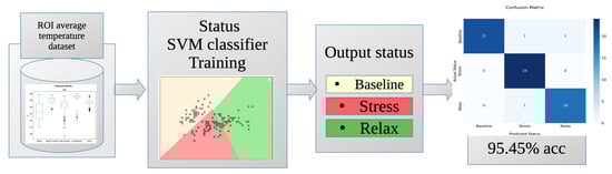 | This work | Automatic detection and classification of thermal ROIs using ML (SVM) | Proprietary database of 300 thermal images carefully obtained during the short TSST protocol |