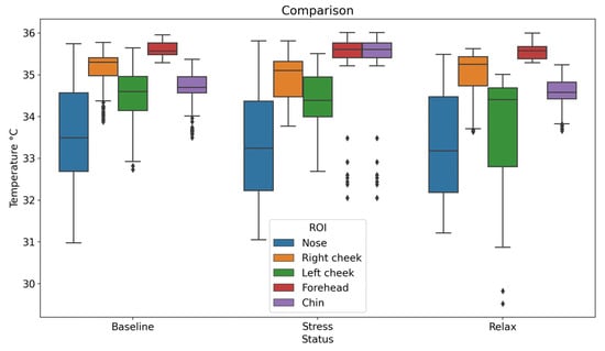 | [8] | Rule-based method, heuristic knowledge with ROIs in fingers and face | Own database from 100 of which 70 were stimulated by the TSST protocol and 30 were not induced to human stress |