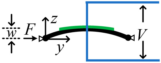 It is assumed that the deformation and electric field of the piezoelectric ceramic are uniform in the direction. Under the action of an axial force , the geometric shape of the simply supported Euler beam can be regarded as a half-sine wave. Then, the deflection at various points on the Euler beam can be expressed as