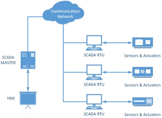 SCADA systems are used to control and monitor critical infrastructure. These infrastructures include those related to the production and distribution of resources such as water, oil, and gas. SCADA systems have a wide range of applications and serve different sectors. SCADA systems consist of three units: the main terminal unit (MTU), the remote terminal unit (RTU) and the communication network (Figure 2).