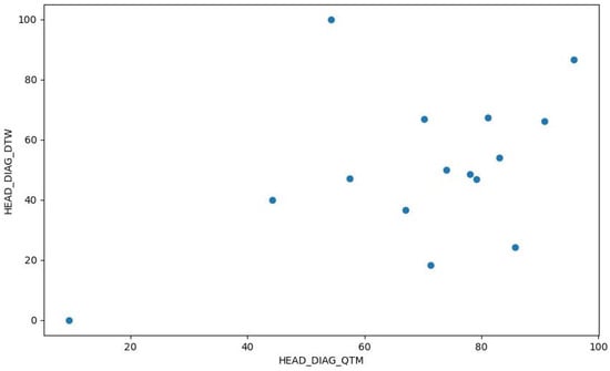Scatter plot of HEAD_DIAG_QTM vs. HEAD_DIAG_DTW.