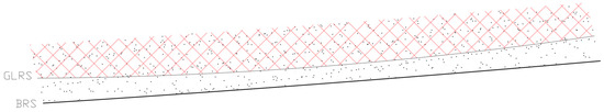 where ZBRS is the depth represented by the BRS surface and ZUAV is the depth represented by the photogrammetric measurement points. The set of DBRS deviation values for all photogrammetric measurement points relative to the BRS surface can be written as follows: