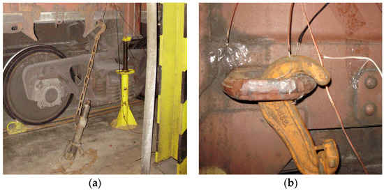 A placement of strain gauges on the body: (a) A tow bracket with two chains attached; (b) A tow bracket with one chain attached.