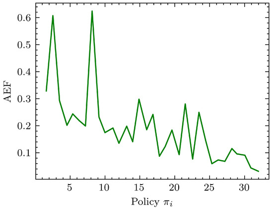 As a final remark, it can be said that having a value high enough is essential so that the expert has enough control early on to navigate the robot in the states of high importance rather than demonstrating how to navigate in states of lesser importance. Furthermore, these results show the performance of the learning system we are presenting with different responsibility shifts from expert to agent. The spikes between low AEF values account for the phases where the agent is exploring previously unseen states due to the responsibility shift. In Figure 9, for , significant and frequent early spikes are seen for the policy evolution, but low spikes are seen towards the end. For , low spikes are seen towards the beginning, and significant spikes are seen towards the end. These observations can be explained as a lack of responsibility taken by the expert in guiding the agent initially and too much responsibility taken by the expert in guiding the agent initially, respectively. is a middle ground between these two extreme ends.