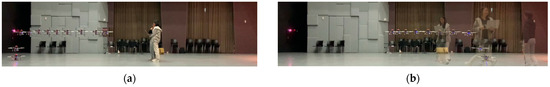 (a) The UAV detected people and hovered; (b) The UAV detected people who left and kept flying.