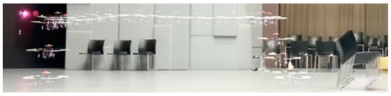 Three obstacle types—”boxes”, “chairs”, and “people”—were evaluated in the obstacle avoidance task, with “chairs” symbolizing the unidentified obstacle. To confirm the UAV’s predicted response, we documented both its frontward and downward views, as well as its evasion status. Figure 11 shows both the flight trajectory of the UAV while it was avoiding the “boxes” and our video record. The YouTube video link to the results of this experiment is https://youtu.be/Efy-fQ2ab28 (accessed on 14 December 2023).