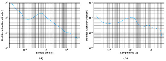 One of the traditional ways of expressing this time-scale-dependent uncertainty is the Allan variance [31], which is calculated using Equation (1):
