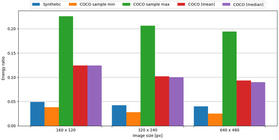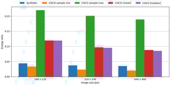 A popular camera module used in embedded devices is based on OV7670 [32]. Due to the fact, that it is difficult to accurately measure the time and energy required for compression of RGB888 image with size of 640 by 480 px, as it would require 900 KB of memory to store uncompressed image while the Blackpill board has only 128 KB of RAM and 512 KB of Flash memory, another approach was required, as only smaller image sizes would fit in the Blackpill board memory—320 by 240 px image with size of 225 KB could fit in Flash memory for benchmarking purposes, and 160 by 120 px image with size of 56.25 KB could fit either in Flash or RAM memory. As measuring the compression of images from the OV7670 module would include data acquisition, synthetic data were used instead. Tested images consist of rows generated with pseudocode shown on the Listing 3.