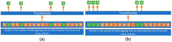 The specific process is as follows: first, the text sequence’s lexicality is annotated using the syntactic dependency tree. In this paper, the Baidu-DDParser tool is utilized for the syntactic analysis of the text. Subsequently, the text is converted into a text sequence. The input vector X of the ERNIE model is then transformed into the ERNIE model, as depicted in Equation (1).