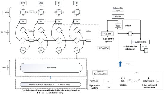 Based on the research into the current state of aircraft field maintenance and guarantee, the current approach still relies on the passive method of “fault-locate the fault-troubleshoot and repair”. When a failure occurs, it necessitates the involvement of a professional maintenance team. In case of a fault, maintenance personnel need to analyze and troubleshoot the fault phenomenon by incorporating relevant historical fault reports and other data. Unfortunately, there remains a dearth of effective intelligent fault diagnosis techniques. Furthermore, the varying proficiency levels of maintenance personnel have resulted in suboptimal stability of the troubleshooting effect. This has also caused maintenance personnel to respond slowly to changes in faults, thereby impeding their ability to promptly and accurately deal with issues [2]. Additionally, given the complex structure of aircraft systems and the varying nature of failures across different systems, aircraft Prognostics and Health Management (PHM) demands a high level of professional expertise from technicians, making it more challenging. Fault diagnosis techniques have evolved from manual testing and external testing to manual diagnosis and intelligent fault diagnosis. Currently, research in the field of Prognostics and Health Management (PHM) primarily focuses on methods based on failure physical models [3] and data-driven approaches [4]. Particularly, migration learning and deep learning methods are utilized to enhance the generalization capability of diagnostic models [5,6,7]. However, physical model-based approaches possess certain limitations. Firstly, they require researchers to possess a comprehensive understanding of the physical structure of the system and the failure mechanism. Secondly, they need to consider various stress factors in the degradation and failure process of the product, in addition to the limited generalization ability of the model. On the other hand, the data-driven approach faces challenges. Due to space and load restrictions on aircraft, it is impractical to install a large number of sensors, making it difficult to obtain sufficient and effective state data for characterizing failures. The existing aircraft systems have accumulated a substantial number of unstructured and semi-structured text-based fault handling cases. Thus, the pressing need in the aircraft PHM field is to swiftly and accurately extract valuable information from this vast amount of text data [8,9].