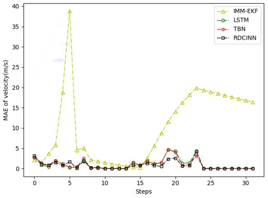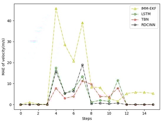 Based on the results presented in Table 2, it can be observed that our network achieves lower position mean absolute error and velocity mean absolute error results compared to the other two baseline neural networks. This demonstrates that our model, applied to the strong maneuvering target tracking domain based on the combined observations of azimuth and Doppler, outperforms the previous target tracking networks.