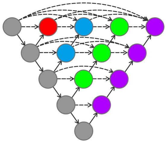However, because of the lack of connections in the middle region of the network structure, the gradient cannot pass through this region. It implies that the backpropagation breaks down here and the network cannot be trained. By adding connections to the middle units, the problem can be solved. Connecting all the middle units is the structure of Unet++, which is shown in Figure 10.