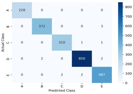 The performance metrics, such as accuracy, recall, and F1-score, can be obtained from the confusion matrix, which are presented in Table 4. The experiment resulted in a lowest recall rate of 0.9918, a lowest accuracy of 99.36%, and a lowest F1-score of 0.9418. The average recall, accuracy, and F1-score were 0.9944, 0.9945 and 0.9945, respectively. The experimental results reveal that the proposed RACN model can recognize underwater acoustic targets with good accuracy.