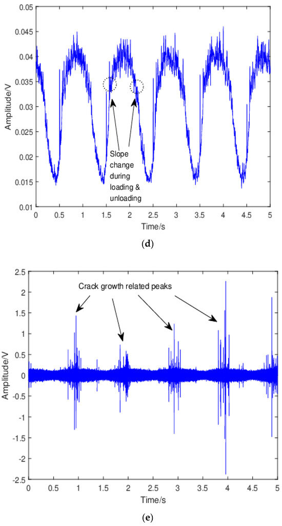 - Gagar, D.; Foote, P.; Irving, P. Effects of loading and sample geometry on acoustic emission generation during fatigue crack growth: Implications for structural health monitoring. Int. J. Fatigue 2015, 81, 117–127. [Google Scholar] [CrossRef]