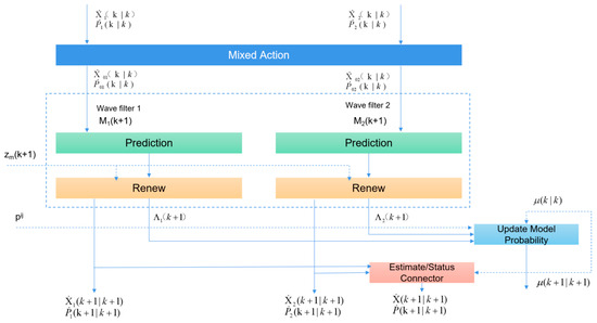 The flowchart of the interactive multi-model IMMKF iteration loop is shown in Figure 10.