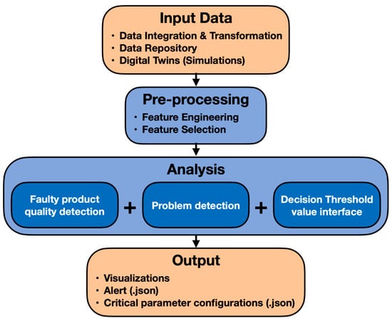 The goal of the product-quality-monitoring QD tool is to be able to diagnose the manufacturing process conditions, manufactured product quality, and potential failure causes quickly and effectively. In particular, by using ML techniques on industrial sensor signals, it applies intelligent techniques to enhance the quality of the finished product. It also performs sophisticated statistical analysis (e.g., causality analysis) on the manufacturing conditions and machine parameters to determine the factors that have the greatest impacts on the product quality. This process is essential because industrial data typically exhibit complex relationships and unpredictable dynamics, the exact signal evolution patterns are not very deep, and latent factors that impact the manufacturing process as a whole are difficult for human operators to directly identify. For the purpose of optimally reconfiguring the machine parameters and implementing corrective measures to mitigate potential product defects, the analysis results are sent to alternative solutions or directly to the machine operators. When a defective product is found, the product-quality-monitoring tool generates an output that includes the relevant parameter configurations of the observations where the failure is thought to be present, along with an alert. Ultimately, it offers assessment visuals to help the machine operators monitor the entire analysis process closely. Three main objectives need to be met in order to achieve zero-defect manufacturing: (i) the cutting of costs and waste, (ii) the elimination of defects, and (iii) the enhancement of the overall quality of the production.